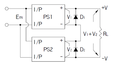 There are two different applications when PSU are connected in series. One is to generate plus minus voltage, another is to increase total output voltage. Connection methods are as follows: