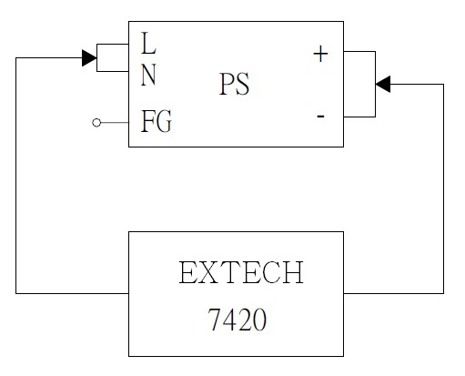 There are two AC contents, also known as Ripple and Noise (R&N), on the DC output. The first one, coming from sine wave rectification, is at a low frequency which is 2 times of the input frequency; the second one is at high frequency which is from the switching frequency. For measuring high frequency noise, configurations of an oscilloscope with a bandwidth of 20MHz, a scope probe with shortest ground wire possible, and add 0.1uF and 47uF capacitors in parallel with test point for filtering out noise interference are requires to be made.